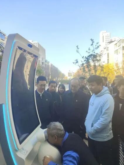图为社区群众体验基于“人工智能+大数据技术”研发的智能健康检测设备。