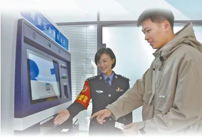 在天津市公安局南开分局向阳路派出所,民警帮助群众通过驾驶证自助制证机办理相关业务。