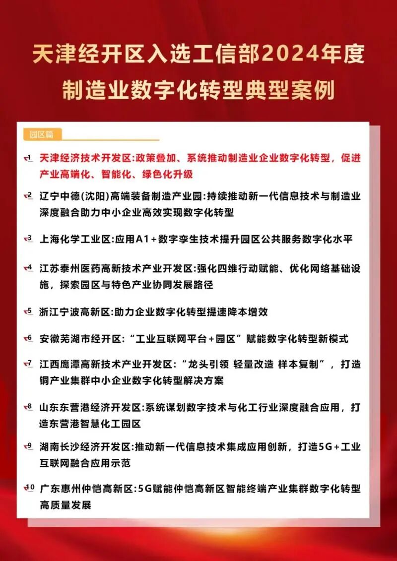 “智改数转”成绩斐然!天津经开区入选工信部2024年度制造业数字化转型典型案例