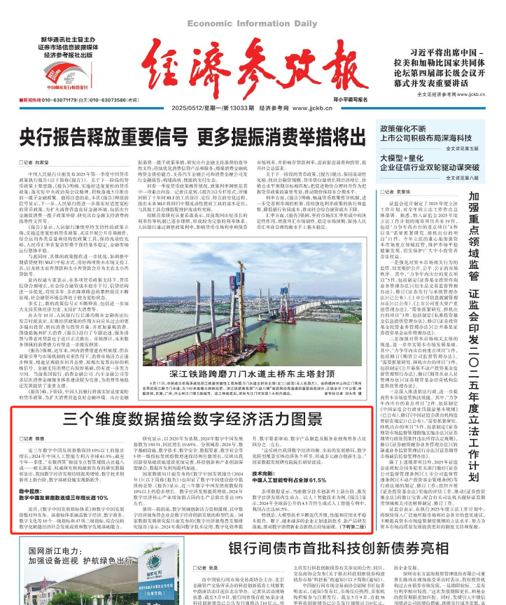 近三年数字中国发展指数保持10%以上的稳步增长;2024年中国人工智能专利占全球61.5%;截至今年一季度,“东数西算”枢纽节点智算规模占比超八成……相关部委、权威研究机构最新发布的研究数据彰显出,我国数字经济发展持续提质增效,数字技术创新再上新台阶,数字基础设施实现新跃升。